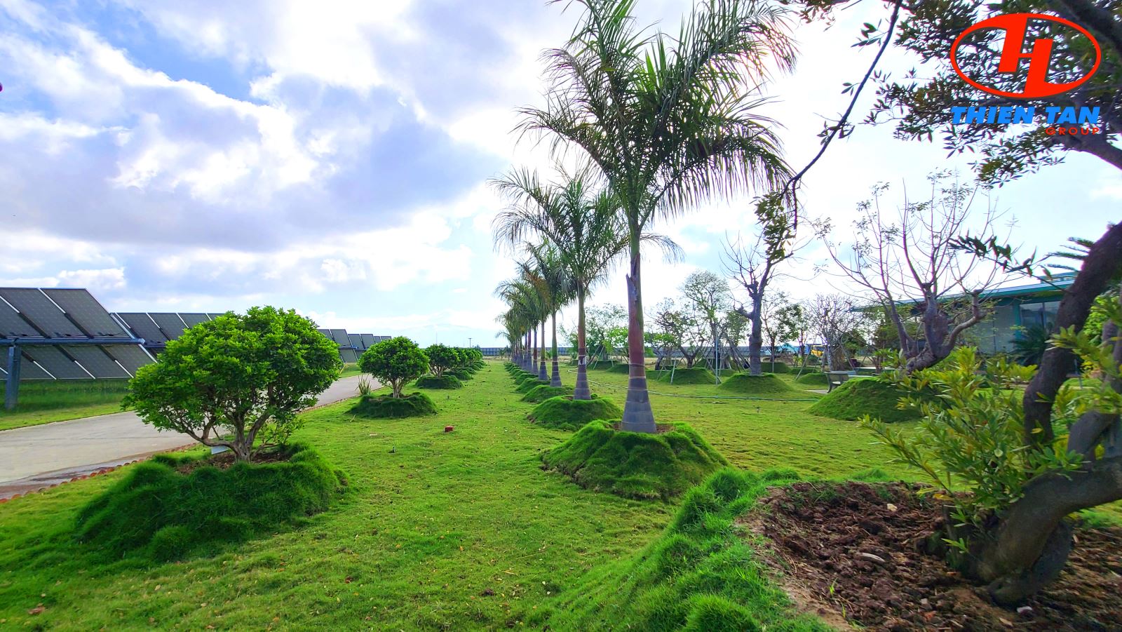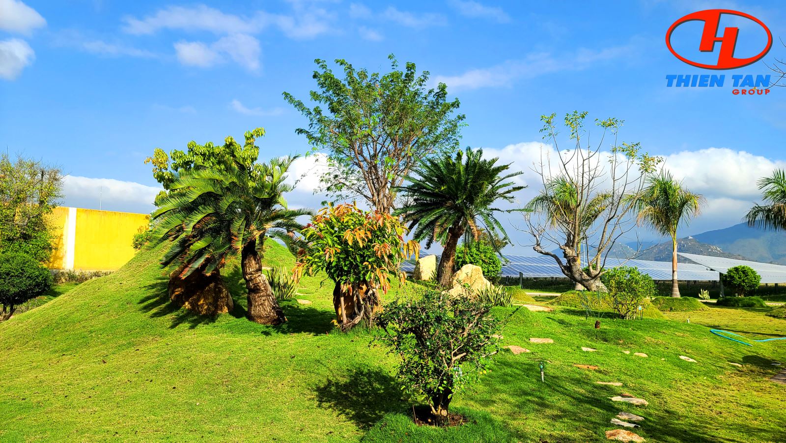 Ngoài việc đầu tư vào hệ thống công nghệ tiên tiến, Thiên Tân Group còn đặc biệt chú trọng đến việc trồng cây xanh và tạo cảnh quan cho dự án điện mặt trời Ninh Thuận. Trong quá trình triển khai và vận hành, Thiên Tân Group đã thực hiện trồng nhiều loại cây phù hợp với khí hậu khô hạn của địa phương, nhằm làm xanh khu vực nhà máy, cải thiện vi khí hậu và hạn chế xói mòn đất. Không gian cảnh quan được quy hoạch hài hòa giữa cơ sở hạ tầng năng lượng và yếu tố tự nhiên, góp phần tạo ra một môi trường làm việc xanh, sạch và đẹp, đồng thời thể hiện cam kết của Thiên Tân Group trong việc phát triển dự án gắn liền với bảo vệ môi trường và phát triển bền vững.