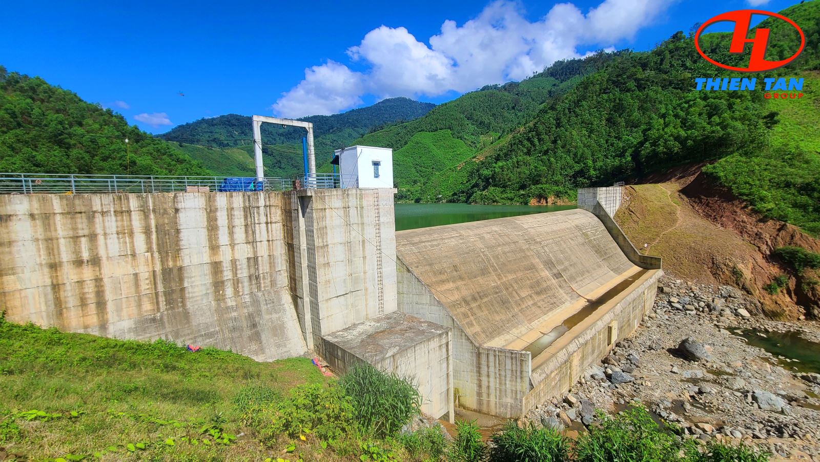 Dự án nổi bật với thiết kế đập bê tông trọng lực vững chắc, kết hợp với đập tràn tự do, giúp điều chỉnh lưu lượng nước một cách hiệu quả và đảm bảo an toàn trong quá trình vận hành. Với lòng hồ chứa rộng lớn nằm giữa khu vực núi cao, dự án tận dụng tối đa nguồn năng lượng thủy điện phong phú để duy trì nguồn điện xanh ổn định, khẳng định khả năng đầu tư và quản lý hạ tầng năng lượng bền vững của Thiên Tân Group.