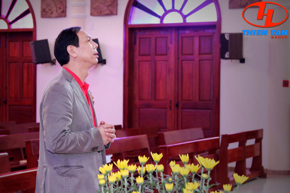 Ông Huỳnh Kim Lập, chủ tịch hội đồng quản trị Thiên tân Group tại giáo xứ Bàu Gốc.