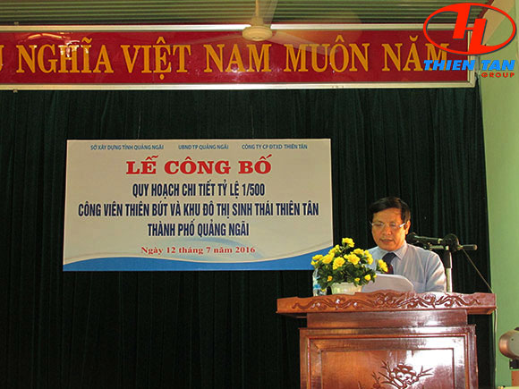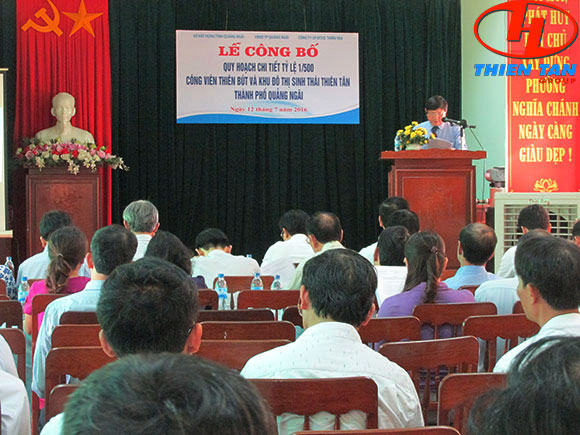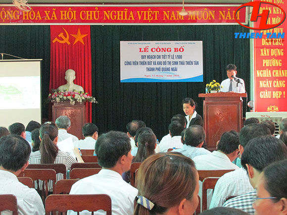 (Thiên Tân Group)-Sáng ngày 12/7/2016 tại UBND phường Nghĩa Chánh, TP. Quảng Ngãi Thiên Tân Group đã có buổi lễ công bố quy hoạch chi tiết tỷ lệ 1/500 công viên Thiên Bút và khu đô thị sinh thái Thiên Tân. Buổi lễ có sự hiện diện của các đồng chí lãnh đạo, các Sở ngành của tỉnh, lãnh đạo của thành phố, phường Nghĩa Chánh và các xã phường liên quan cùng bà con nhân dân trong vùng quy hoạch.