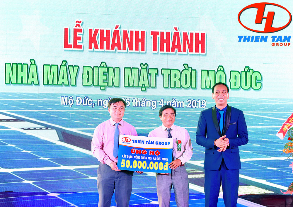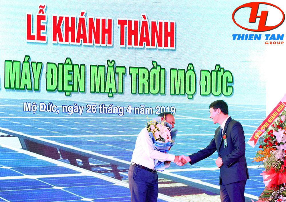 (Thiên Tân Group)-Chiều 26/4, buổi Lễ Khánh thành nhà máy điện mặt trời Mộ Đức – dự án nhà máy điện mặt trời được cấp phép đầu tiền tại Việt Nam đã được tổ chức thành công. Dưới đây là một số hình ảnh của buổi lễ được Thiên Tân Group ghi lại.