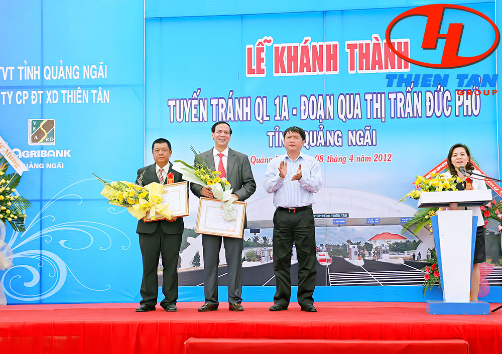 (Thiên Tân Group) – Ngày 08/04/2012 tại Đức Phổ, Quảng Ngãi đã diễn ra lễ khánh thành tuyến tránh quốc lộ 1A, đoạn qua thị trấn Đức Phổ, tỉnh Quảng Ngãi. Đây là dự án được triển khai theo hình thức B.O.T, được Thiên Tân Group đầu tư 650 tỷ đồng.