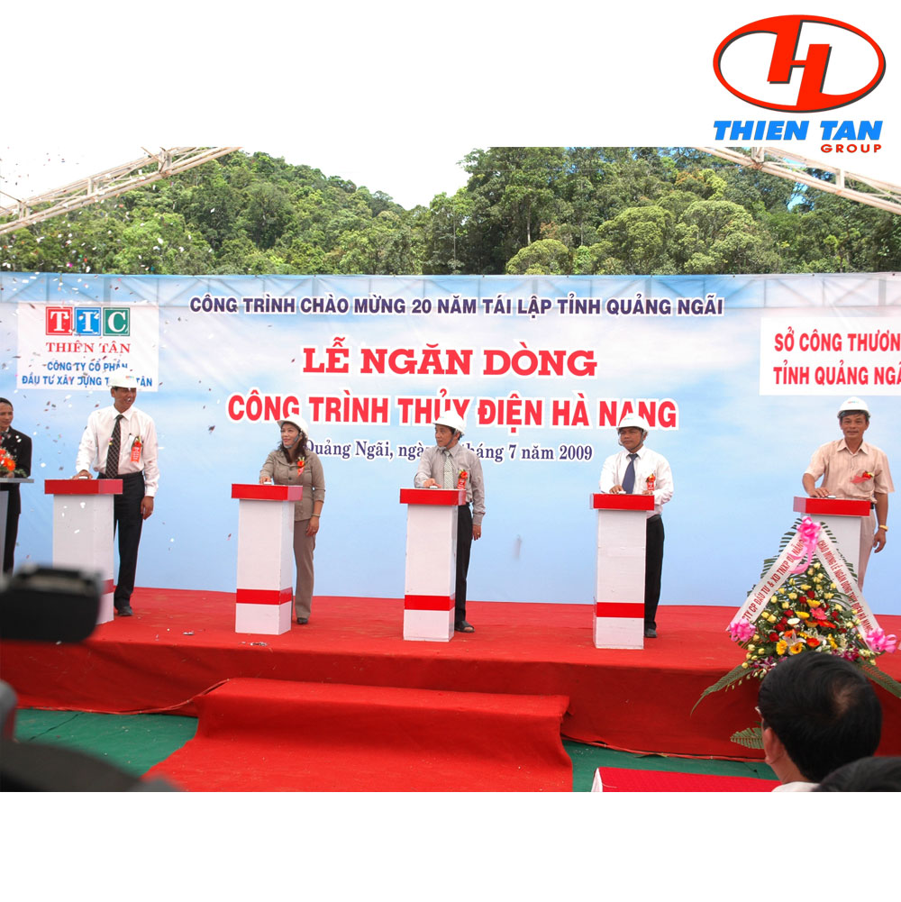 (Thiên Tân Group) – Lễ ngăn dòng thủy điện Hà Nang được diễn ra vào ngày 25/07/2009 do Thiên Tân Group phối hợp với Sở công thương tỉnh Quảng Ngãi tổ chức tại Trà Bồng, Quảng Ngãi. Đây là máy thủy điện đầu tiên của Thiên Tân Group.