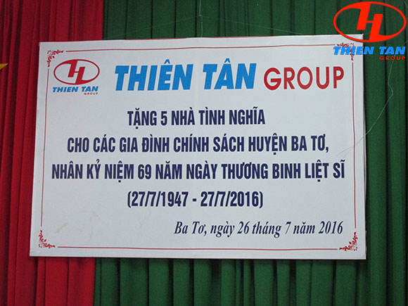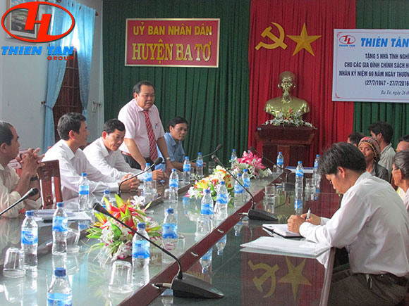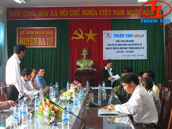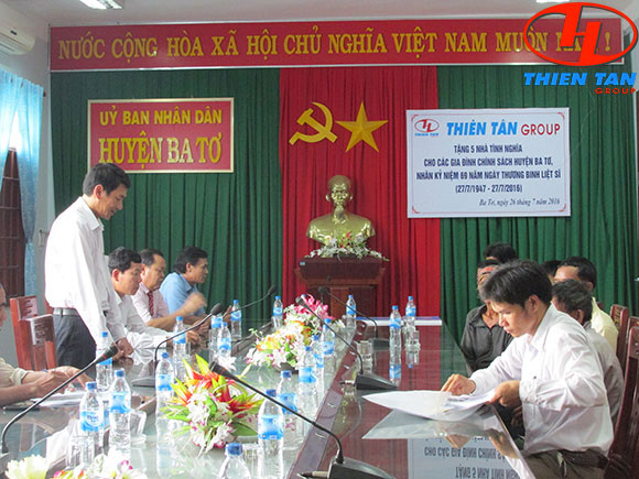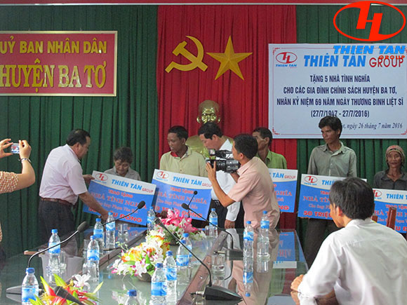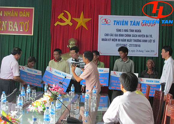 (Thiên Tân Group)-Ngày 26.7.2016, Thiên Tân Group cùng Huyện ủy, UBND huyện Ba Tơ, Quảng Ngãi đã trao tặng 5 căn nhà tình nghĩa cho các gia đình chính sách hiện sinh sống trên địa bàn 2 xã Ba Tô và Ba Xa.