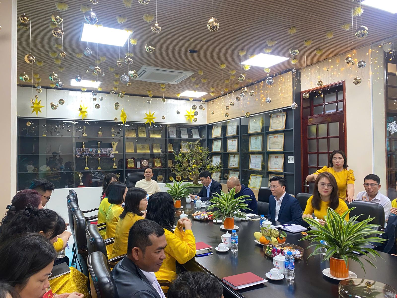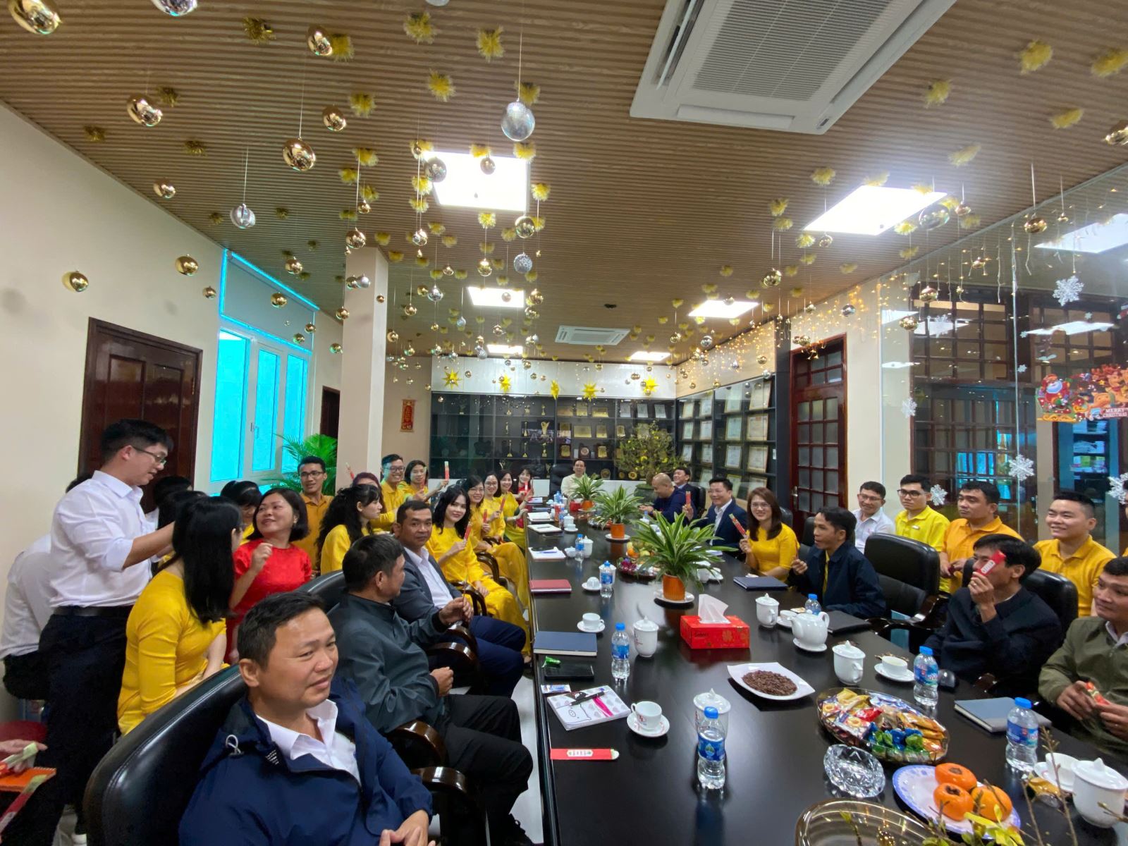 Buổi gặp mặt đầu năm là dịp để cán bộ, nhân viên các phòng ban cùng nhau giao lưu, gửi đến nhau những lời chúc tốt đẹp cho năm mới. Những phong bao lì xì đầu xuân được trao tặng như lời chúc may mắn, thuận lợi và khởi đầu suôn sẻ cho chặng đường phía trước.