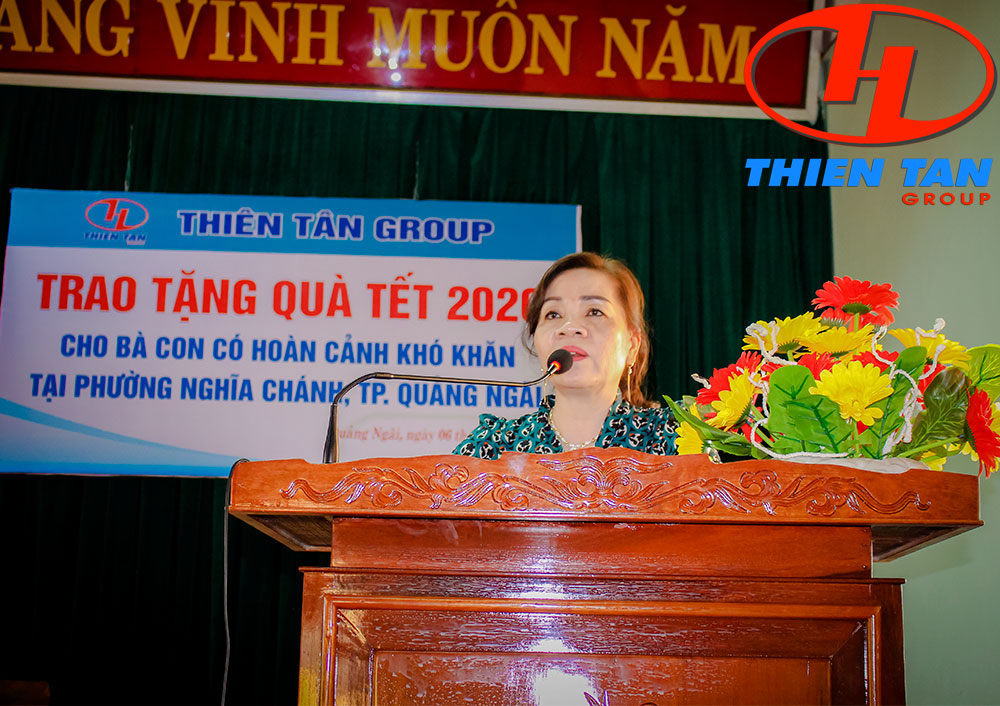"Những món quà Tết được trao đi chính là những thông điệp nhân ái, nghĩa tình, tấm lòng sẻ chia của Thiên Tân Group muốn gửi tới người nghèo, người có hoàn cảnh khó khăn… của phường Nghĩa Chánh" bà Trần Thị Hương, Phó Giám đốc Thiên Tân Group chia sẻ.