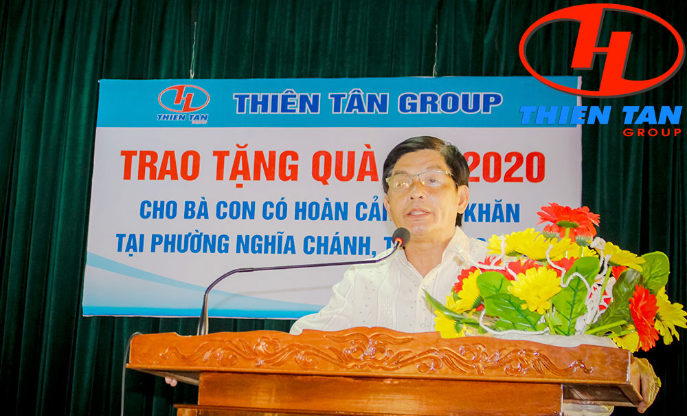 Ông Nguyễn Nhân, UVBTV Đảng Ủy, Chủ tịch HĐND phường Nghĩa Chánh trân trọng việc làm ý nghĩa hàng năm của Thiên Tân Group mỗi dịp Tết đến xuân về, ông cũng mong muốn Công ty tiếp tục phát triển, tiếp tục chia sẻ với bà con có hoàn cảnh khó khăn