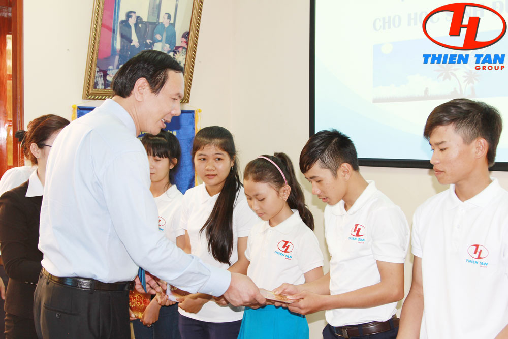 (Thiên Tân Group) – Ngày 19/01/2016, tại trụ sở Thiên Tân Group đã diễn ra lễ tặng quà tết cho các em học sinh được học bổng Chân trời ước mơ. Hình ảnh ông Huỳnh Kim Lập, Chủ tịch HĐQT Thiên Tân Group gặp gỡ, thăm hỏi và tặng quà tết cho các em.