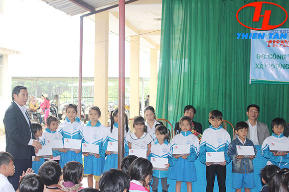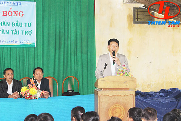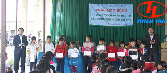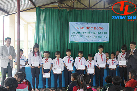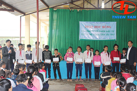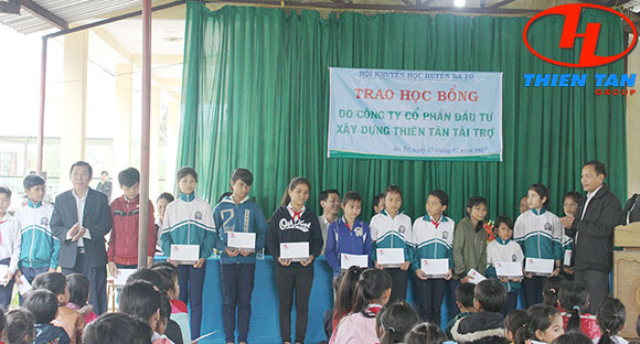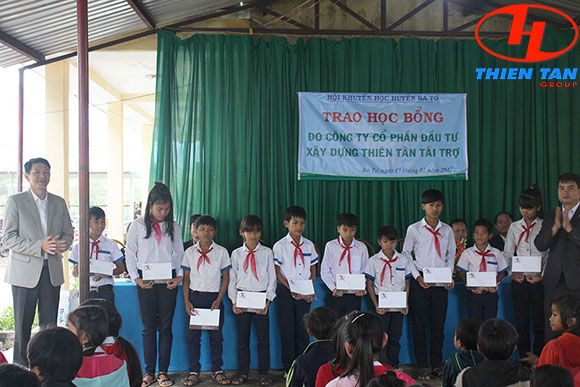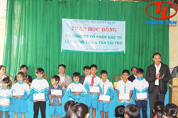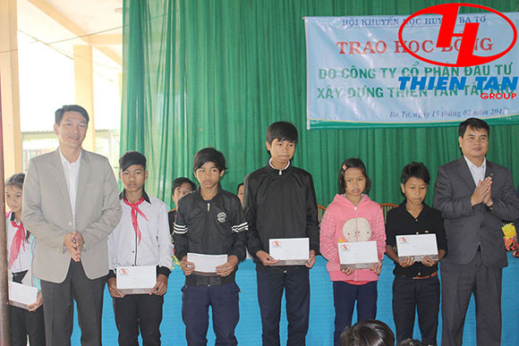 (Thiên Tân Group)-Nhằm mục đích san sẻ những khó khăn và động viên tinh thần thế hệ tương lai trên đường tìm kiếm tri thức, ngày 15/2/2017 Thiên Tân Group đã trao 100 suất học bổng cho những học sinh có hoàn cảnh khó khăn đang theo học tại các trường Tiểu học và THCS của huyện miền núi Ba Tơ, Quảng Ngãi.