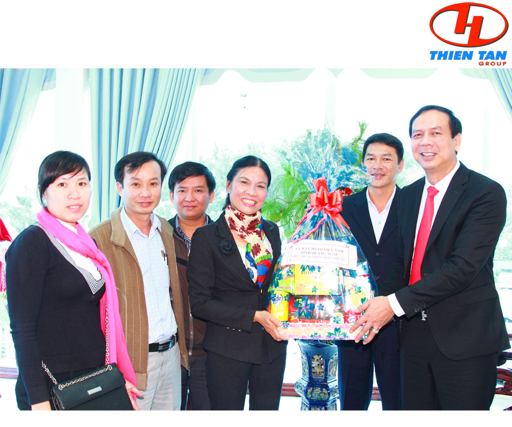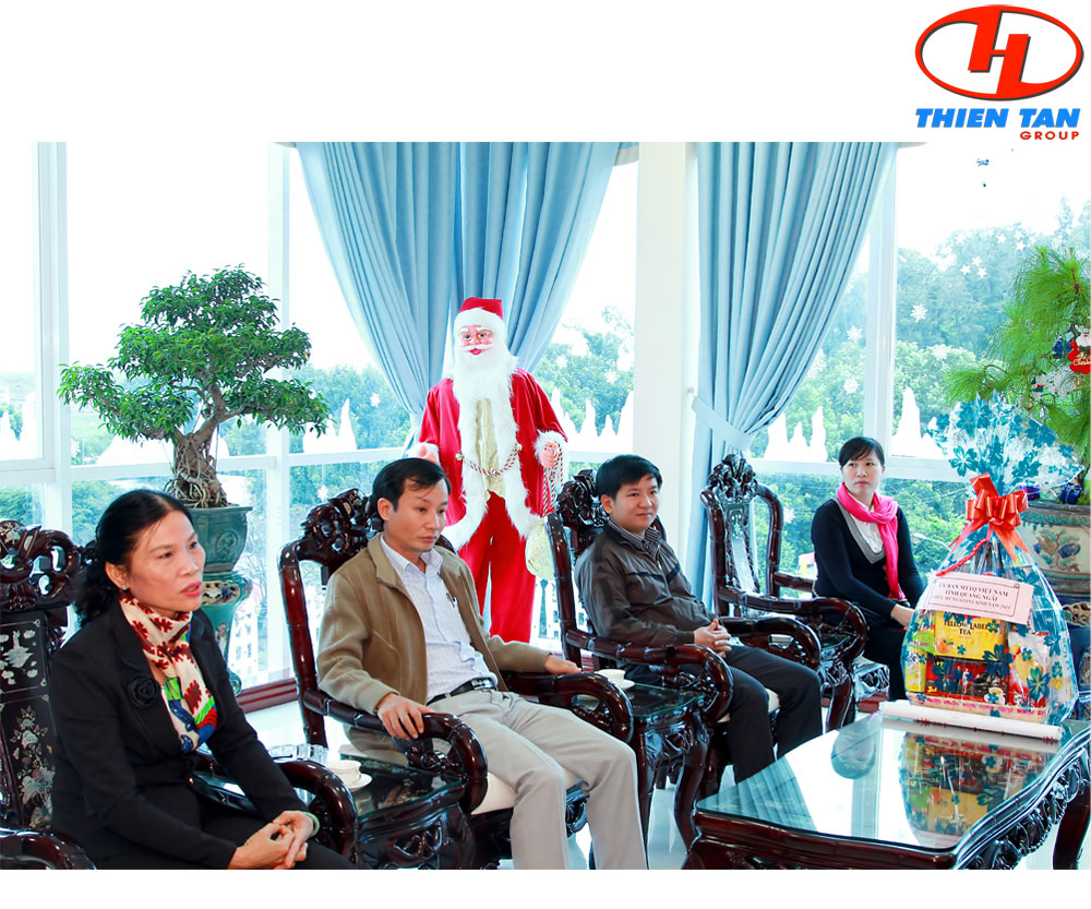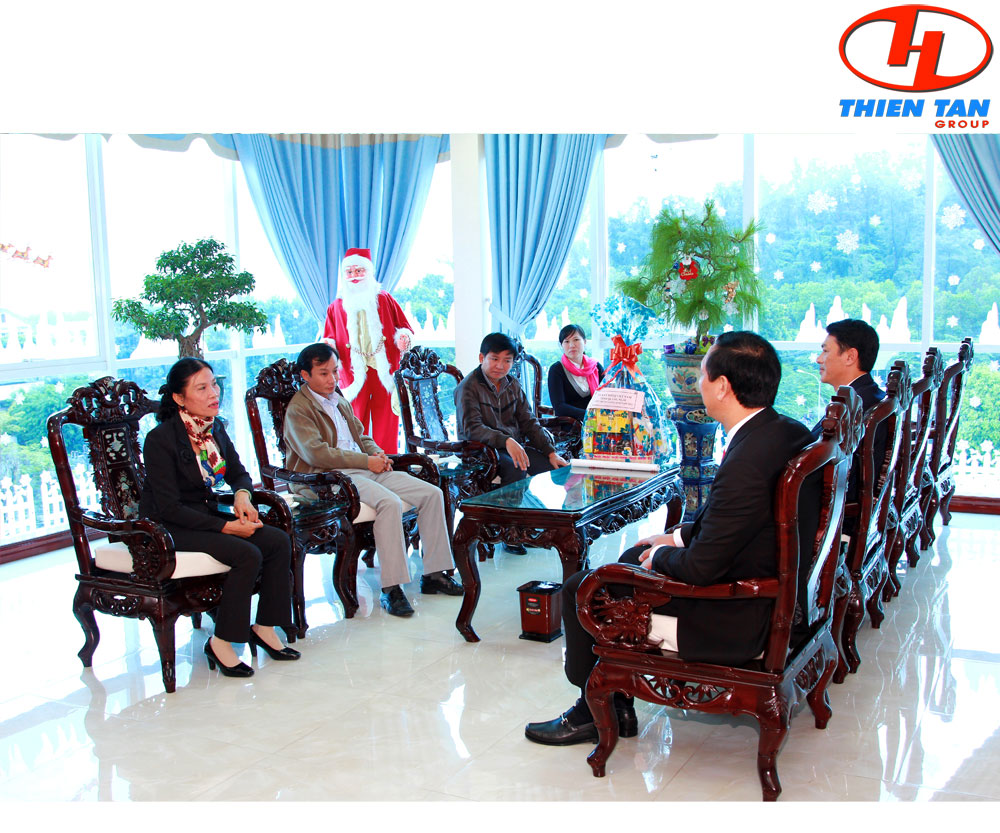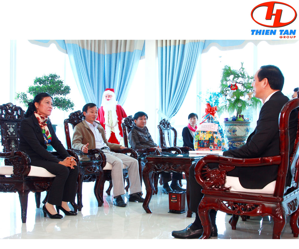 (Thiên Tân Group) – Hình ảnh gặp gỡ thân mật của lãnh đạo Thiên Tân Group gồm ông Huỳnh Kim Lập (CTHĐQT) và ông Huỳnh Bảo Linh (giám đốc) tiếp đón lãnh đạo của Ủy ban mặt trận tổ quốc tỉnh Quảng Ngãi đến thăm và chúc mừng giáng sinh 2015, dẫn đầu là bà Đặng Thị Lệ Thu, phó chủ tịch UBMTTQ tỉnh Quảng Ngãi.