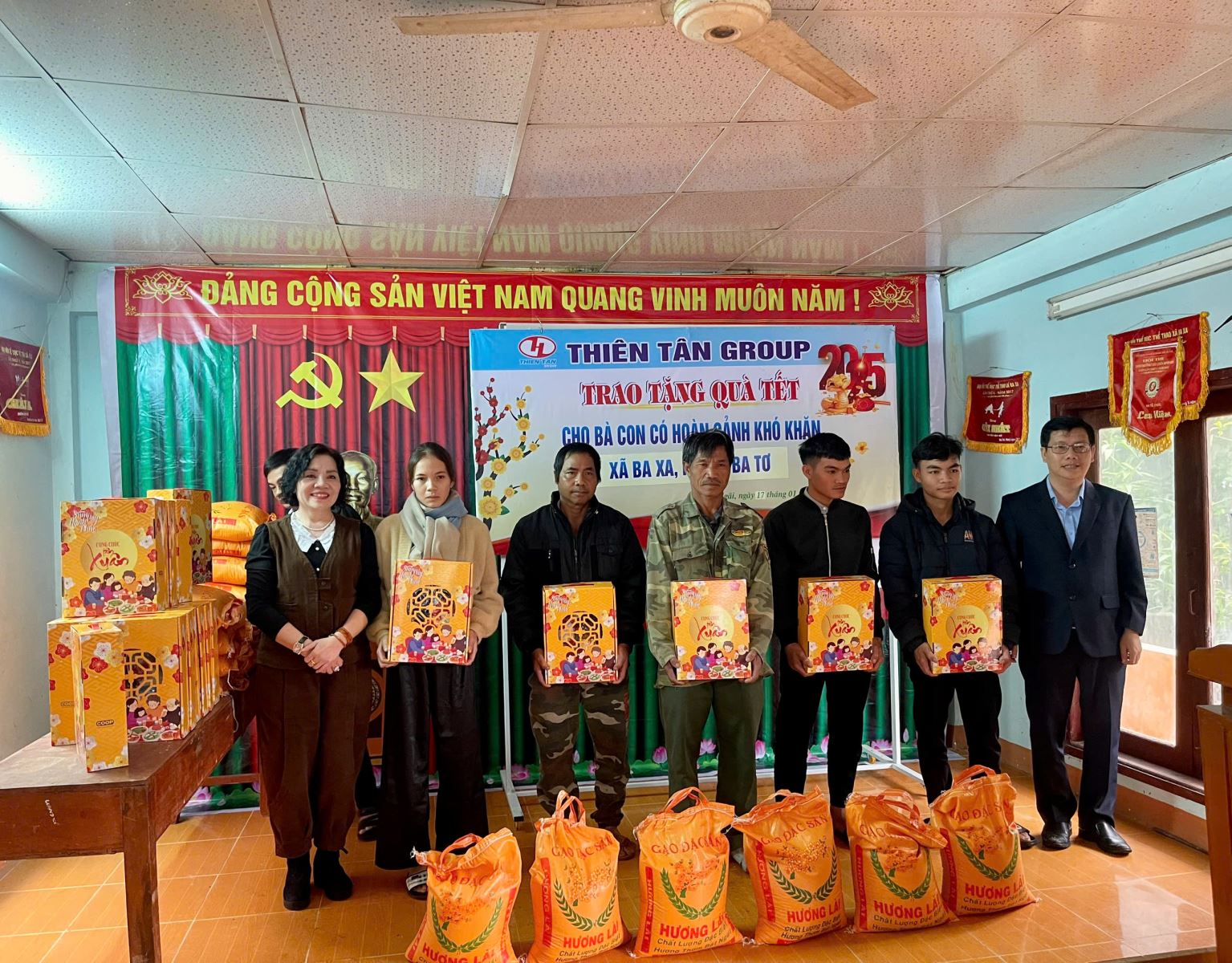 Tại sự kiện, đại diện của Thiên Tân Group đã trao tặng nhiều phần quà Tết, bao gồm các nhu yếu phẩm như gạo, mì, dầu ăn, đường, bánh kẹo và tiền mặt, nhằm giúp bà con có điều kiện đón một cái Tết ấm áp và đầy đủ hơn. Mặc dù giá trị vật chất của những phần quà không lớn, nhưng chúng thể hiện sự chia sẻ và động viên kịp thời đối với những gia đình còn khó khăn, đặc biệt là ở các vùng sâu, vùng xa của huyện Ba Tơ.
