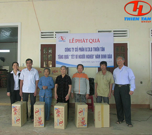 Nhằm động viên các hộ giáo dân nghèo tại huyện Nghĩa Hành đón Tết cổ truyền dân tộc vui vẻ, đầm ấm, lãnh đạo Thiên Tân Group đã hỗ trợ 50 suất quà cho các hộ có hoàn cảnh đặc biệt khó khăn trên địa bàn huyện Nghĩa Hành, mỗi suất quà trị giá 500 ngàn đồng bao gồm mì tôm, dầu ăn đường, bột ngọt….