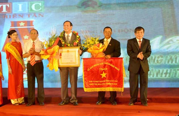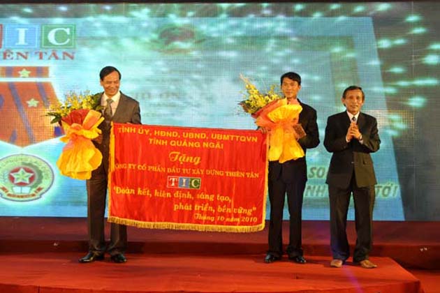 Tại buổi lễ, đồng chí Nguyễn Xuân Huế-Chủ tịch UBND tỉnh và đồng chí Nguyễn Hoàng Sơn-Phó Chủ tịch UBND tỉnh đã trao Huân chương Lao động hạng Ba của Nhà nước trao tặng cho Công ty cổ phần Đầu tư Xây dựng Thiên Tân vì có những thành tích xuất sắc trong giai đoạn từ 2005-2009 và Cờ thi đua xuất sắc của UBND tỉnh cho công ty. Nhân dịp này Tỉnh ủy, HĐND, UBND, UBMTTQVN tỉnh cũng đã trao bức trướng cho công ty với dòng chữ “Đoàn kết, kiên định, sáng tạo, phát triển, bền vững”.