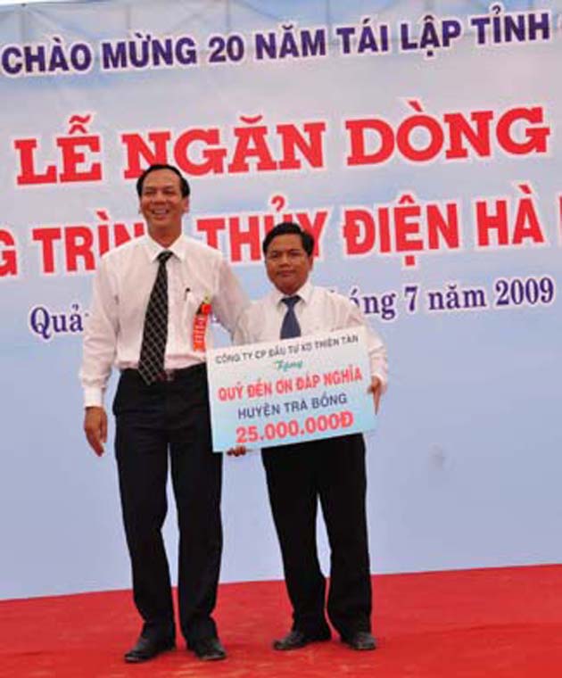 Tại buổi lễ, Công ty cổ phần Đầu tư và Xây dựng Thiên Tân đã ủng hộ 25 triệu đồng vào Quỹ đền ơn đáp nghĩa huyện Trà Bồng. UBND tỉnh đã tặng bằng khen cho 3 cá nhân thuộc Công ty Cổ phần đầu tư Xây dựng Thiên Tân vì đã có thành tích trong việc đẩy nhanh tiến độ công trình thuỷ điện Hà Nang.