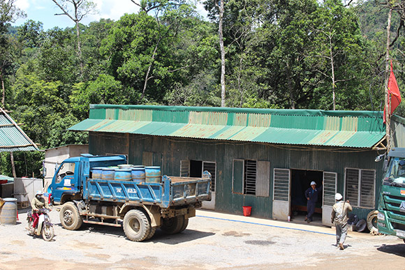 Những buổi chiều trên núi thường có mưa dông nên khi chúng tôi đến các công nhân đang tạm nghỉ chờ mưa tạnh. Tại khu lán, trại nơi các anh em sinh hoạt hàng ngày từng nhóm công nhân ngồi lại vừa nghỉ ngơi vừa trò chuyện cùng nhau. Thoáng nhìn tôi đoán các lán trại rộng khoảng 10m2 được dựng tạm bợ bằng tôn, trong lán có các vật dụng sinh hoạt cần thiết, đồ đạc và giường ngủ.