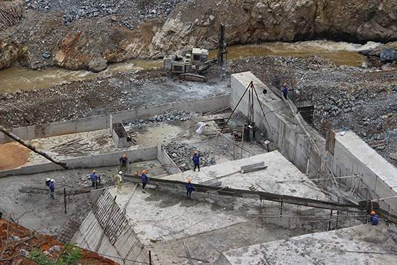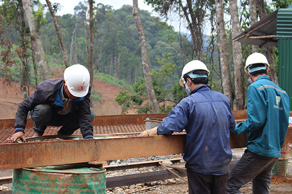 Đến công trình vào giai đoạn này không khó để bắt gặp hình ảnh những người đàn ông đang tất bật với công việc đào đất, đập đá, chuyển gạch, cắt sắt…Vì cuộc sống mưu sinh họ trầm mình dưới cái nắng gay gắt của miền Trung ngày qua ngày vẫn chịu khó lam lũ với công việc nơi công trình đầy bụi bặm…