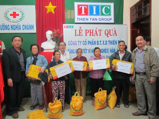 Phát biểu tại buổi trao quà, ông Huỳnh Kim Lập- Giám đốc Công ty CP Đầu tư xây dựng Thiên Tân chia sẻ: “Mặc dù giá trị của túi quà không nhiều nhưng đây là tấm lòng, tình cảm của công ty, nhằm mang đến cho bà con một cái tết ấm cúng hơn. Hy vọng bà con sẽ vươn lên trong cuộc sống, vượt qua chính mình để xây dựng cuộc sống ngày một tốt đẹp hơn”.