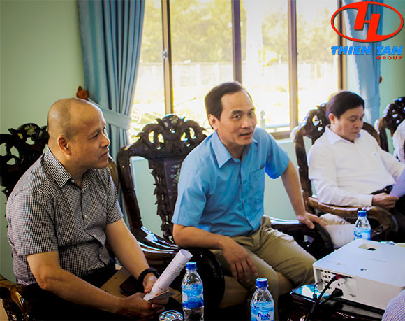 Báo cáo với đoàn công tác, ông Huỳnh Kim Lập, Chủ tịch HĐQT Thiên Tân Group đã giới thiệu với đoàn về lịch sử hình thành, phát triển của tập đoàn; những dự án tiêu biểu; các hoạt động an sinh xã hội nổi bật và những thành tích to lớn mà đơn vị đã đạt được cũng như kết quả thực hiện dự án Nhà máy điện mặt trời Mộ Đức.
