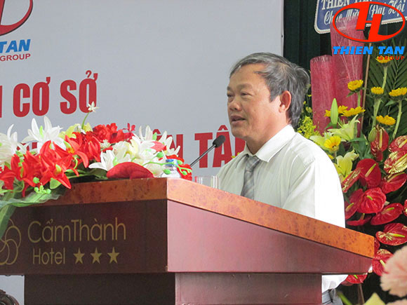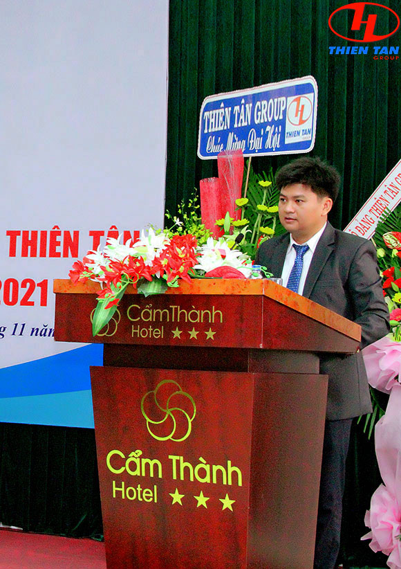 Bí thư Chi bộ, Phó Giám đốc Dương Thanh Hồng thay mặt Chi bộ Đảng Thiên Tân Group phát biểu tại Đại hội