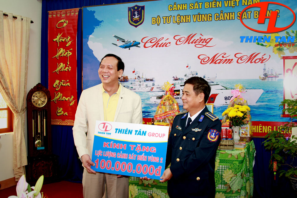 Thay mặt Bộ Tư lệnh Cảnh sát biển Vùng 2, Chính uỷ, Đại tá Trần Văn Dũng đã có lời cảm ơn chân thành tới ông Lê Viết Chữ và ông Huỳnh Kim Lập cũng như Thiên Tân Group đã có những tình cảm rất nồng ấm dành cho các chiến sĩ cảnh sát biển vùng 2 nhân dịp xuân Bính Thân 2016.