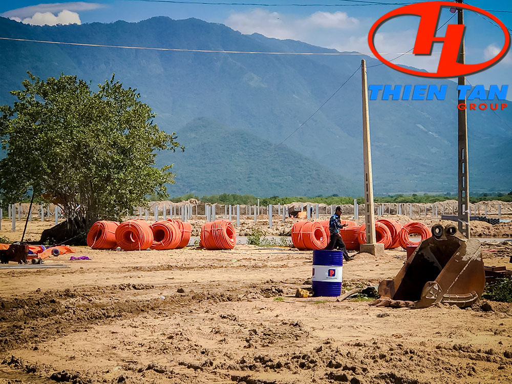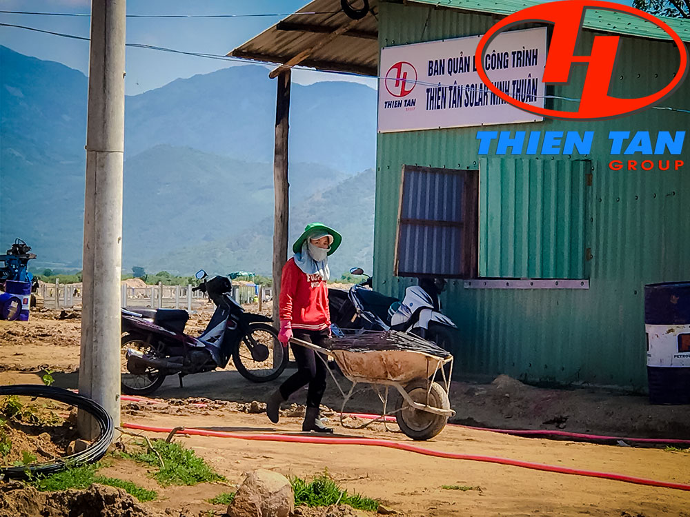 Thời điểm này, tại công trường thi công nhà máy điện mặt trời Thiên Tân Solar Ninh Thuận nằm trên địa bàn xã Phước Trung, huyện Bác Ái, tỉnh Ninh Thuận có hơn 117 công nhân, kỹ sư, các chuyên gia đang tất bật làm việc liên tục bất kể nắng, mưa để thi công hoàn thành các hạng mục quan trọng như: nhà điều hành, nhà ở công nhân, hệ thống điện, hệ thống thoát nước, thi công hệ thống cọc và giá đỡ trục xoay, trạm biến áp, đường dây dẫn...