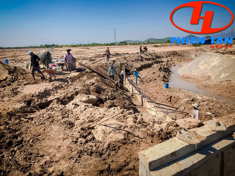 Dưới cái nắng rát bỏng da và gió khô rang của vùng đất Ninh Thuận, hàng trăm công nhân vẫn miệt mài ngày đêm thi công các hạng mục được giao.