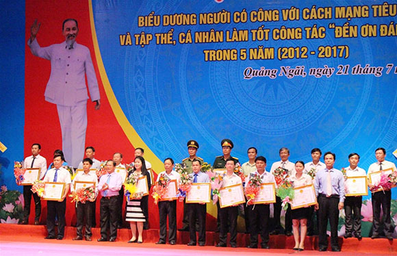 Tích cực vận động xây dựng quỹ “Đền ơn đáp nghĩa”, qua đó, góp phần tri ân, chăm lo đời sống vật chất và tinh thần cho thương bệnh binh, gia đình liệt sĩ và người có công trên địa bàn. Hơn 16 năm qua, quỹ “Đền ơn đáp nghĩa” của công ty luôn được duy trì và phát triển. Từ năm 2011 đến nay, Công ty phối hợp với Đài Phát thanh Truyền hình Quảng Ngãi mở chuyên mục “Chân trời mơ ước”. Thông qua chương trình này Công ty đã trích trên 7,2 tỷ đồng để nhận hỗ trợ nuôi dưỡng 50 em học sinh có hoàn cảnh đặc biệt khó khăn, trẻ em mồ côi không nơi nương tựa… Công ty cũng đã nhận nuôi dưỡng 10 bà Mẹ Việt Nam Anh hùng, hỗ trợ xây nhà cho các Mẹ. Ngoài ra, nhân ngày Thương binh, liệt sĩ 27/7 và Tết Nguyên đán hàng năm công ty đã chỉ đạo và tổ chức các hoạt động thăm hỏi, tặng quà các gia đình chính sách, người có công với cách mạng , các Mẹ VNAH trên địa bàn tỉnh…