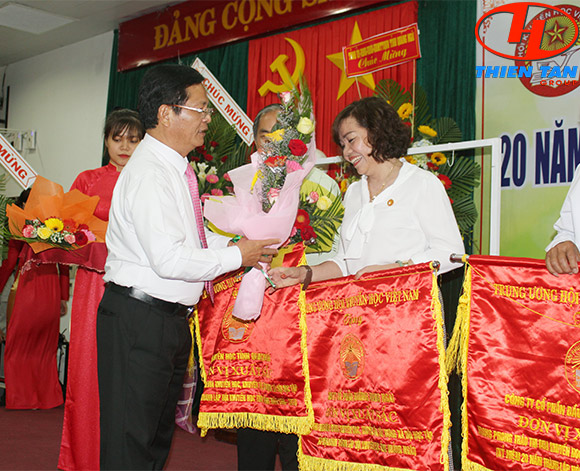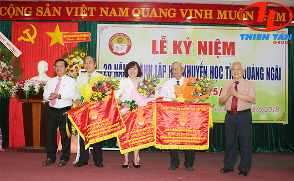 Thiên Tân Group vinh dự là một trong 3 đơn vị được Bí thư Tỉnh Ủy Lê Viết Chữ và GS. TS. Phạm Tất Dong – Phó Chủ tịch kiêm Tổng thư ký Trung ương Hội Khuyến học Việt Nam trao Cờ Thi đua xuất sắc tại buổi lễ