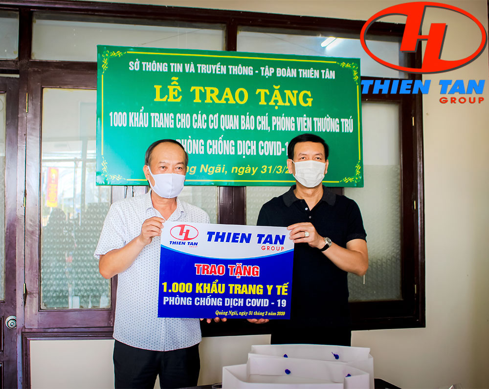 1.000 chiếc khẩu trang đã được Thiên Tân Group trao tặng đến các cơ quan báo chí, phóng viên thường trú trên địa bàn tỉnh. Đây là loại khẩu trang vải cao cấp 3 lớp có chức năng kháng khuẩn, chống tia cực tím, chống nhiễm vi khuẩn, virus, có thể giặt và tái sử dụng trong 30 lần, được xem là món quà ý nghĩa Thiên Tân Group muốn gửi đến các cơ quan báo chí để cổ vũ, động viên tinh thần giúp các phóng viên yên tâm tác nghiệp trước tình hình khan hiếm khẩu trang y tế và các bác sĩ cũng khuyến cáo nên dùng khẩu trang vải để phòng chống dịch bệnh Covid-19.