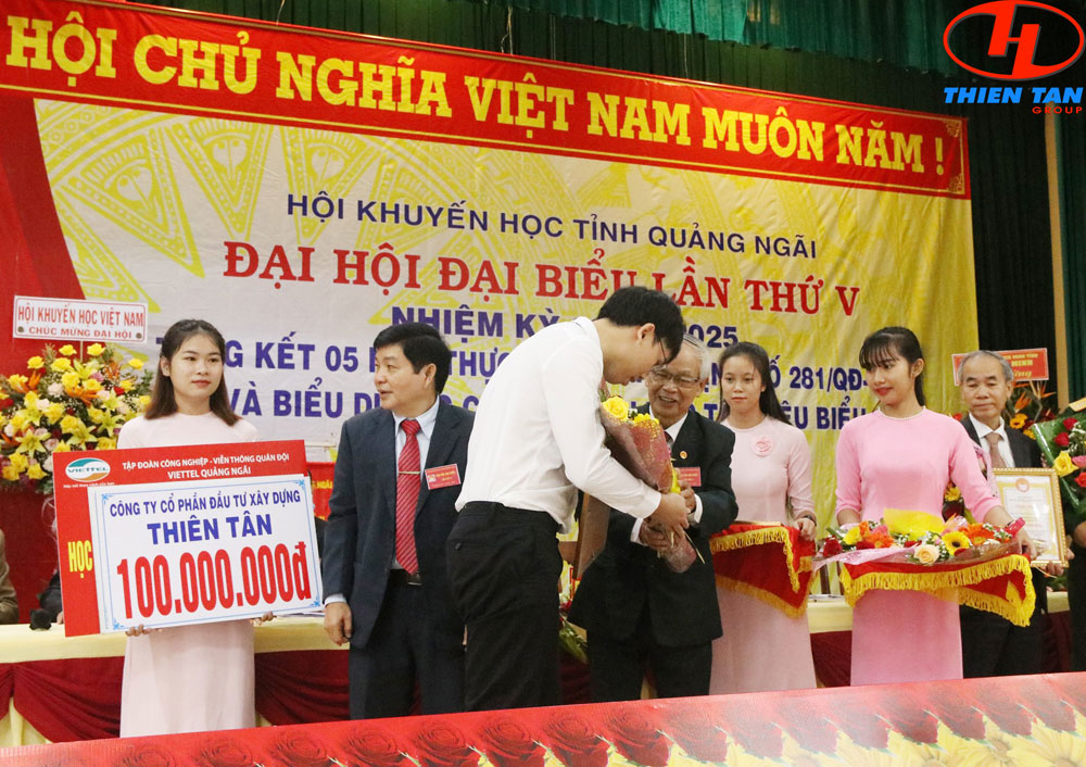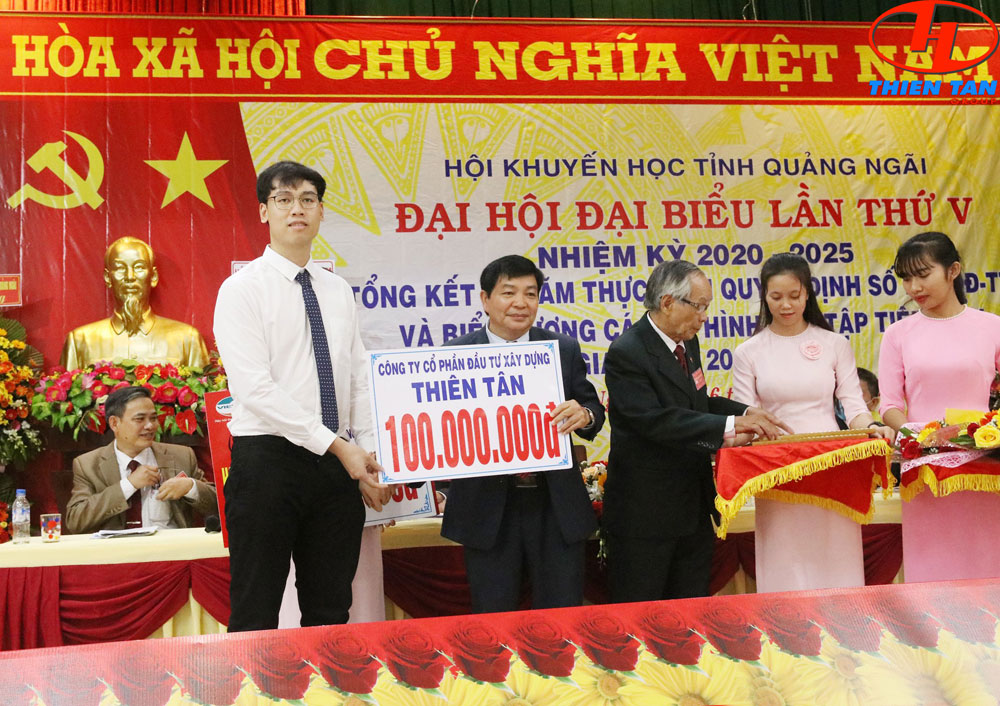 Đại diện Thiên Tân Group, ông Huỳnh Trần Hữu Nghĩa đã trao số tiền 100.000.000 (một trăm triệu đồng) cho quỹ Hội khuyến học tỉnh Quảng Ngãi. Đây là sự thể hiện tâm huyết và tình cảm của Ban lãnh đạo cùng toàn thể cán bộ nhân viên Thiên Tân Group vì sự nghiệp trồng người của địa phương, khuyến khích phát huy tài năng trẻ góp phần xây dựng và phát triển nền giáo dục cho tỉnh nhà.