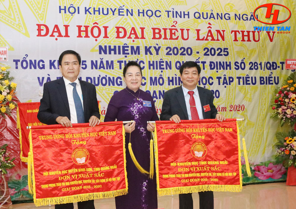 Đại diện Thiên Tân Group nhận hoa và bằng khen của "Hội khuyến học tỉnh Quảng Ngãi"