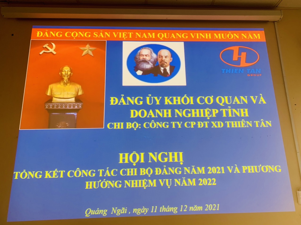 Hội nghị tổng kết công tác Chi bộ Đảng năm 2021 và Phương hướng nhiệm vụ năm 2022 của Công ty Cổ phần Đầu tư Xây dựng Thiên Tân. Tại buổi lễ công ty đã tiến hành tổng kết công tác Đảng và kiểm điểm, đánh giá và xếp loại chất lượng Đảng viên tại chi bộ.