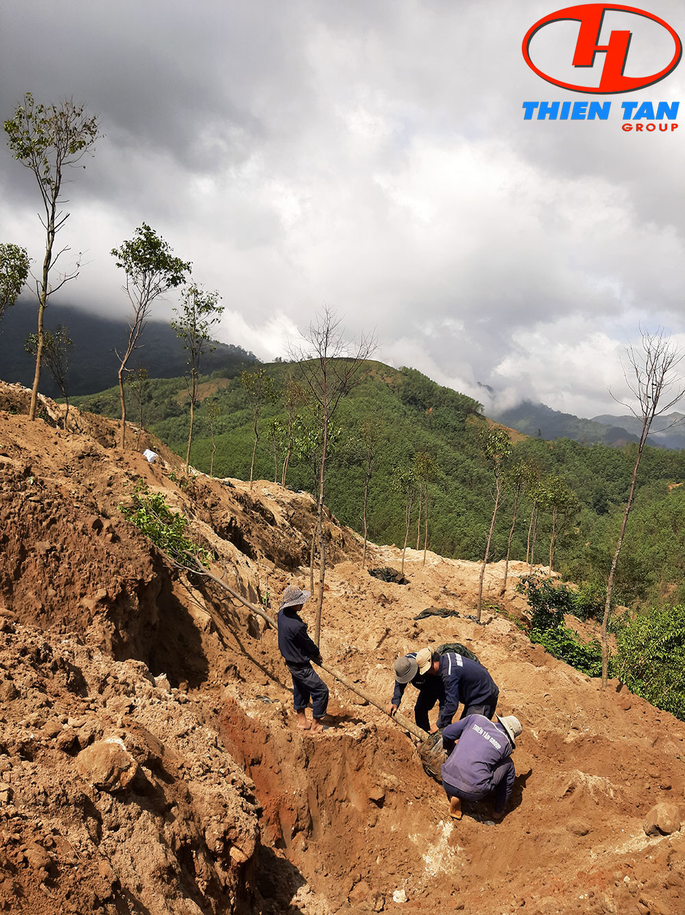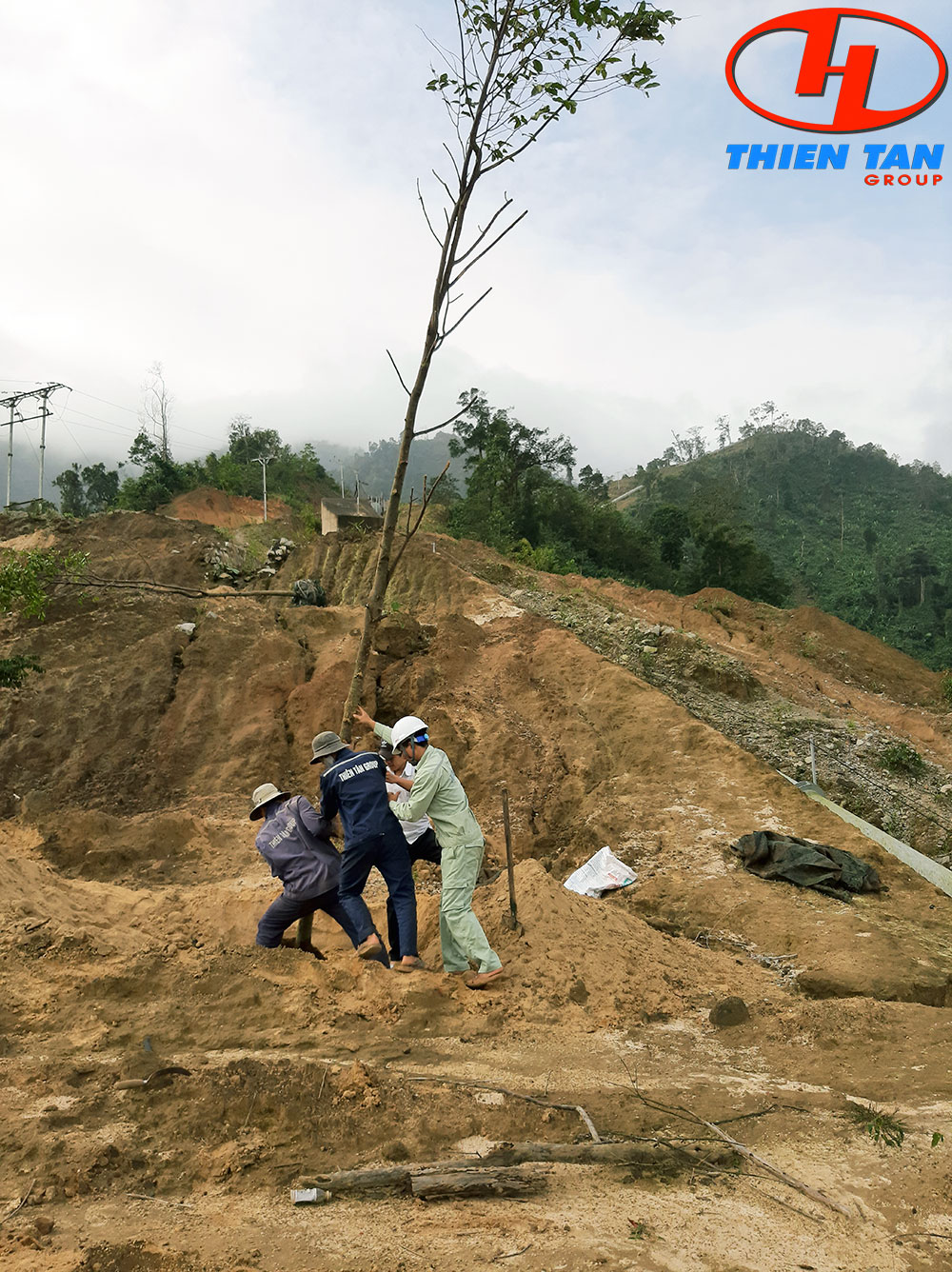 Các công nhân, người lao động của Nhà máy Thủy điện Đăkre tất bật đào đất, trồng cây nhằm phủ xanh rừng những ngày giáp Tết