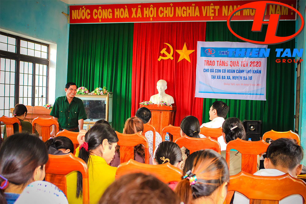 Tham dự và trực tiếp trao tặng quà Tết 2020 cho bà con có ông Huỳnh Bảo Linh - Giám đốc Thiên Tân Group và đại diện lãnh đạo của UBND xã Ba Xa.