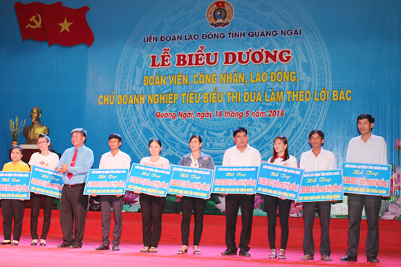 Ngoài ra Lễ biểu dương năm nay, UBND tỉnh đã tặng Bằng khen cho 8 doanh nghiệp và 11 công nhân; Liên đoàn Lao động tỉnh trao thưởng cho 9 doanh nghiệp, 10 công nhân và đơn vị phối hợp có thành tích tiêu biểu trong phong trào thi đua làm theo lời Bác năm 2018. Ban tổ chức còn trao bảng tượng trưng hỗ trợ xây dựng mới 15 nhà mái ấm công đoàn trị giá 40 triệu đồng/nhà và hỗ trợ sửa chữa cho 8 nhà mái ấm công đoàn trị giá 20 triệu đồng/nhà cho đoàn viên, công nhân có hoàn cảnh đặc biệt khó khăn. Nhân dịp này, Thiên Tân Group cũng đã ủng hộ số tiền 30 triệu đồng cho chương trình Mái ấm công đoàn.