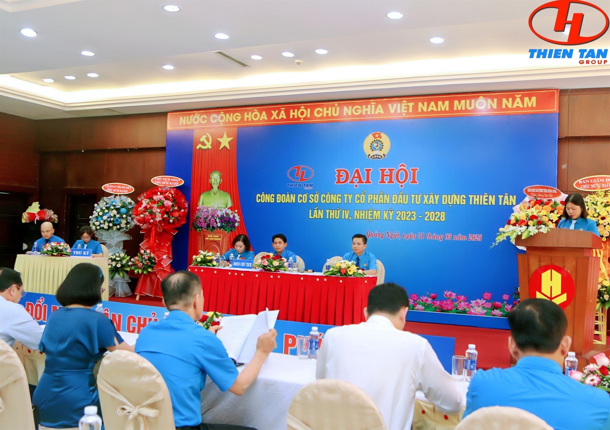 Với tinh thần đổi mới dân chủ, đổi mới đoàn kết và phát triển Đại hội đã bầu 11 đồng chí tham gia Ban chấp hành Công đoàn Công ty trong nhiệm kỳ mới và bầu đoàn đại biểu đi dự Đại hội đại biểu Liên đoàn lao động Tỉnh Quảng Ngãi được tổ chức trong thời gian tới. Ông Võ Nghĩa Hà được bầu giữ chức Chủ tịch Công đoàn cơ sở Công ty Cổ phần Đầu tư Xây dựng Thiên Tân lần thứ IV, nhiệm kỳ 2023-2028.
