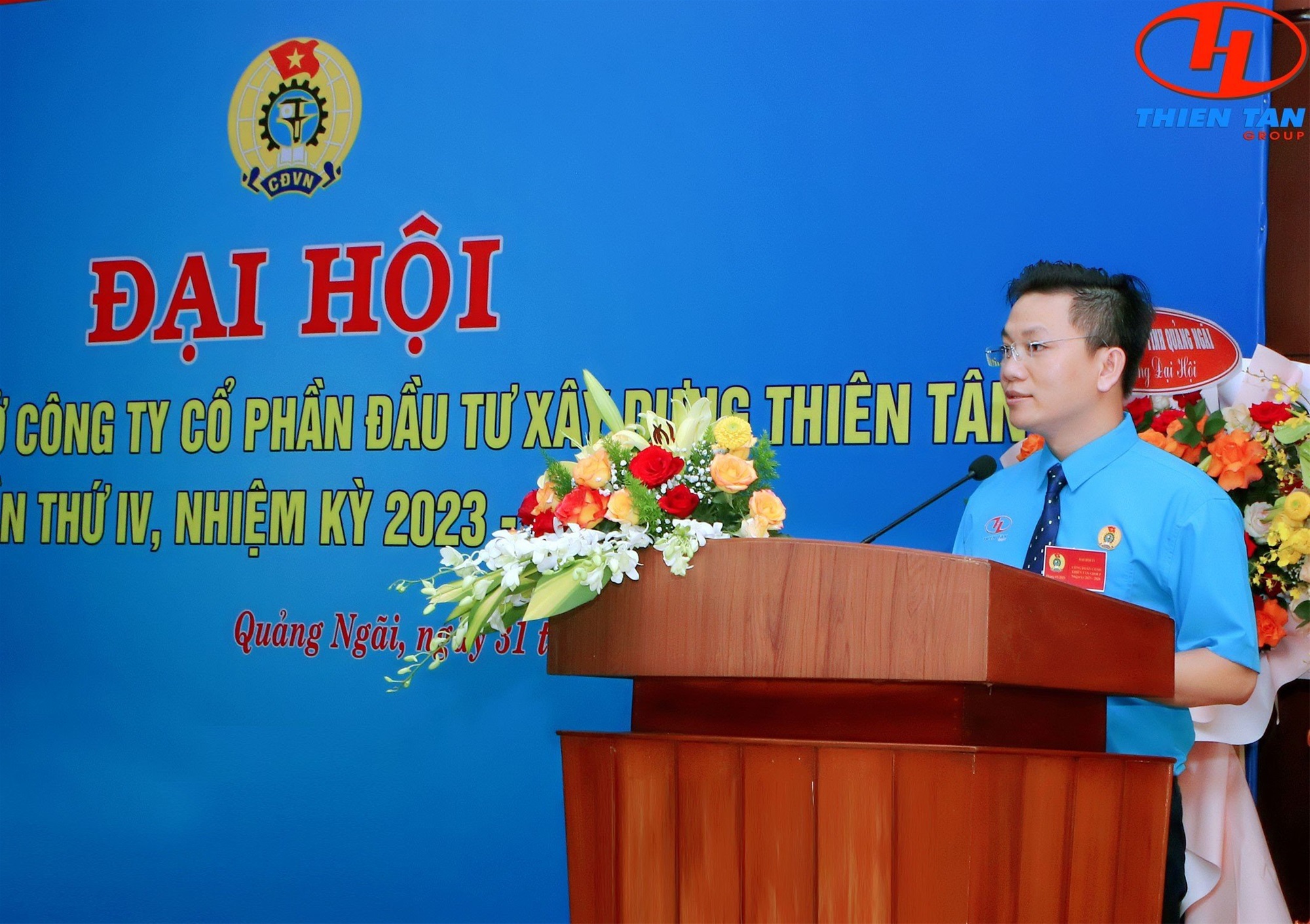 Nhân dịp này, đại biểu Liên đoàn lao động tỉnh đã tặng hoa chúc mừng đại hội, đại diện Lãnh đạo Liên đoàn lao động tỉnh Quảng Ngãi đã biểu dương những kết quả Công đoàn Công ty Cổ phần ĐTXD Thiên Tân đã đạt được trong nhiệm kỳ qua, lưu ý một số nhiệm vụ, giải pháp xây dựng tổ chức Công đoàn Công ty trong nhiệm kỳ mới và tặng hoa chúc mừng Đại hội.