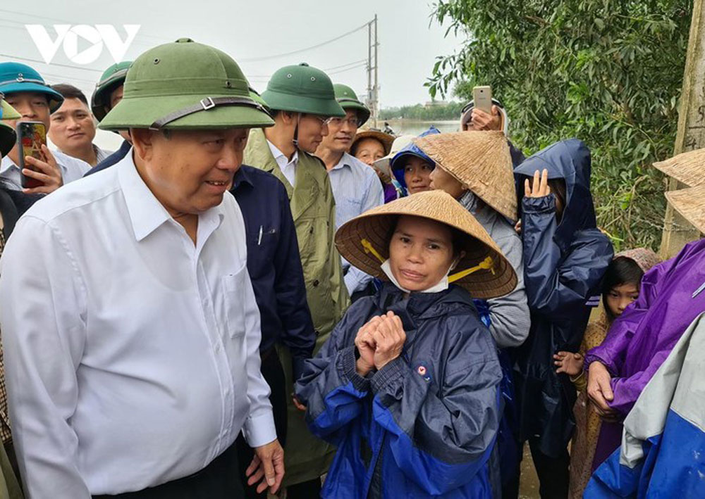 Phó Thủ tướng Thường trực Chính phủ Trương Hòa Bình thăm động viên bà con vùng bị ảnh hưởng của mưa lũ.