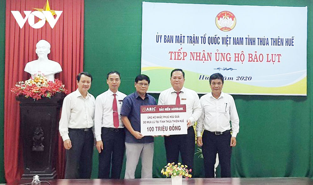 Công ty Cổ phẩn Bảo hiểm Ngân hàng Nông nghiệp trao 100 triệu đồng đến Ủy ban Mặt trận Tổ quốc Việt Nam tỉnh Thừa Thiên Huế.