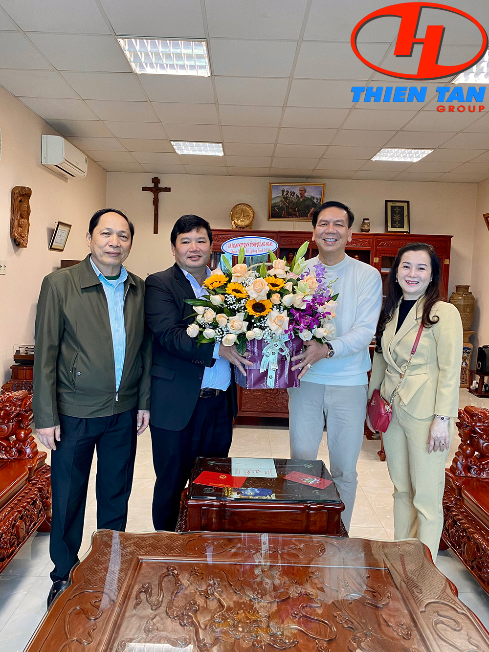 Trong không khí ấm áp mùa Giáng sinh, thay mặt lãnh đạo Đảng, Nhà nước, Mặt trận Tổ quốc Việt Nam, Phó Chủ tịch Ủy ban Mặt trận Tổ quốc Việt Nam Bùi Đức Thọ cũng lãnh đạo tỉnh Quảng Ngãi đã đến thăm và chúc mừng Chủ tịch và toàn thể cán bộ nhân viên công ty cổ phần đầu tư xây dựng Thiên Tân hưởng một mùa Giáng sinh an lành, vui tươi, hạnh phúc và tiếp tục có những đóng góp thiết thực hơn nữa vào sự phát triển của tỉnh nhà.